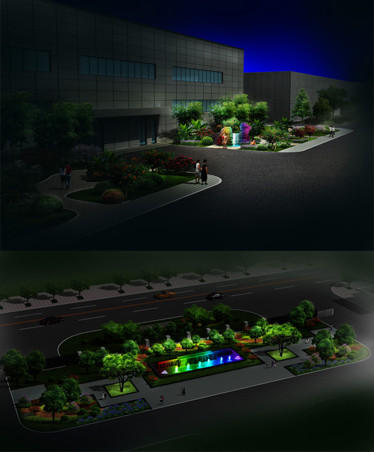 簡介—— 彩虹廠夜景照明設(shè)計(jì),是結(jié)合廣場噴泉景觀,廣場樹木以及草坪的亮化,設(shè)計(jì)主要采用彩色燈光和暖色白光為主,中心已白光打亮整個廣場,照明路面,周邊樹木圍欄周圍采用線條燈勾勒出輪廓,在用照樹燈給樹木打亮,是廣場的夜晚更加璀璨。