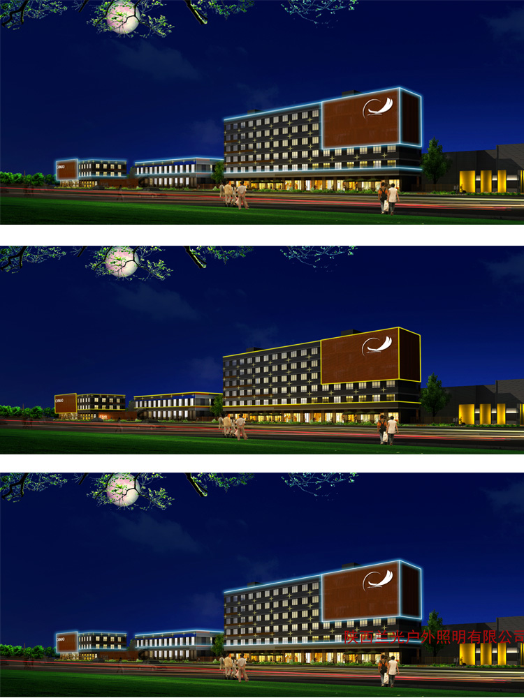 簡(jiǎn)介—— 菜鳥亮化項(xiàng)目是我公司和阿里巴巴西安菜鳥公司溝通,做的初步設(shè)計(jì)效果圖,結(jié)合菜鳥配送中心的功能性,在主樓體做發(fā)光亮化效果,主要采用線條燈勾勒,點(diǎn)光源點(diǎn)綴效果,到達(dá)客戶需求的亮化效果。